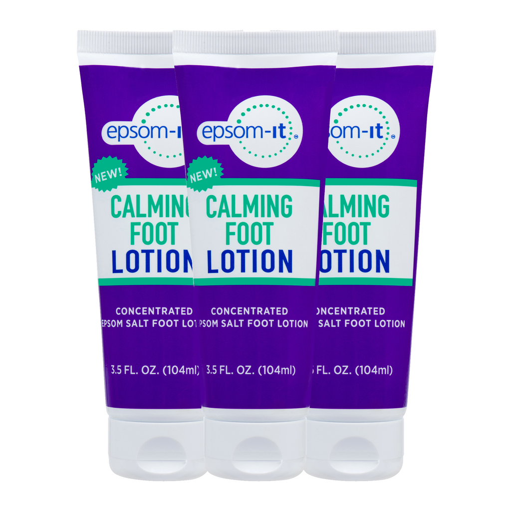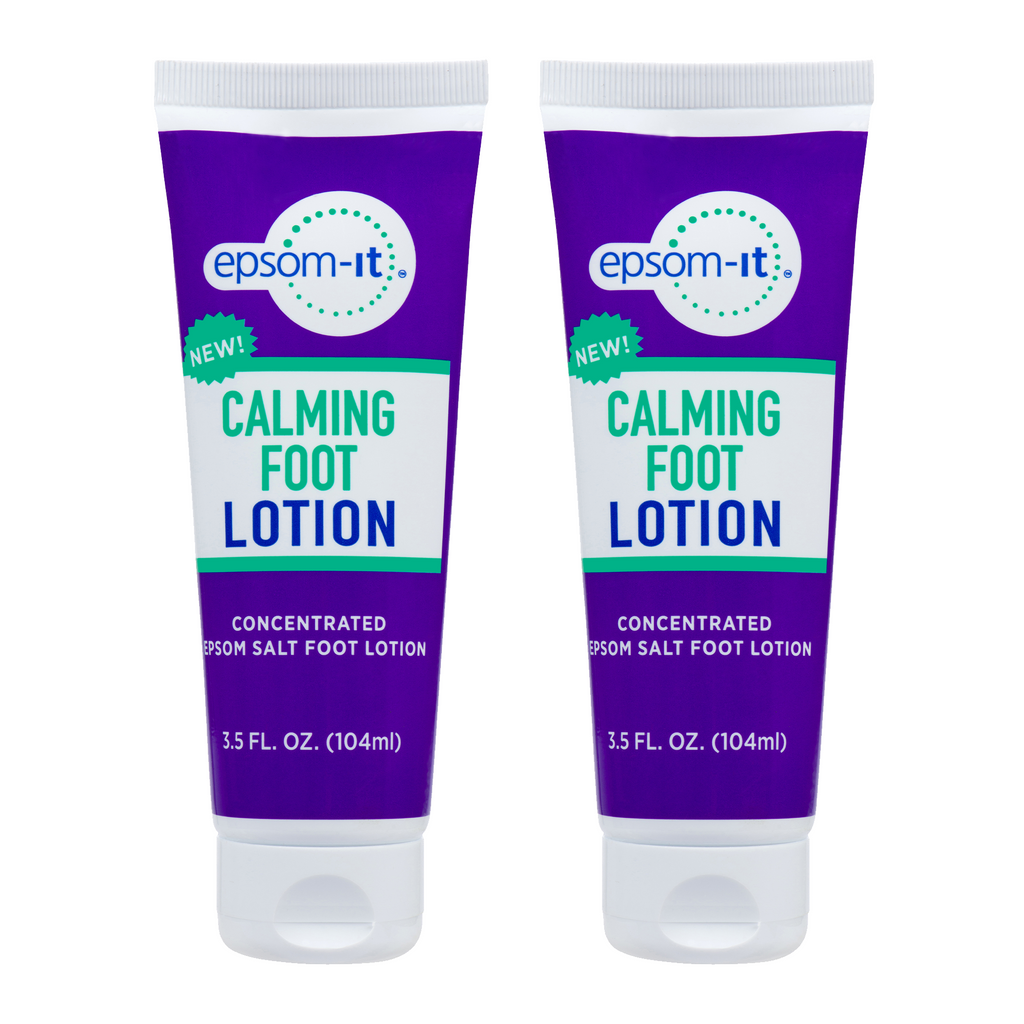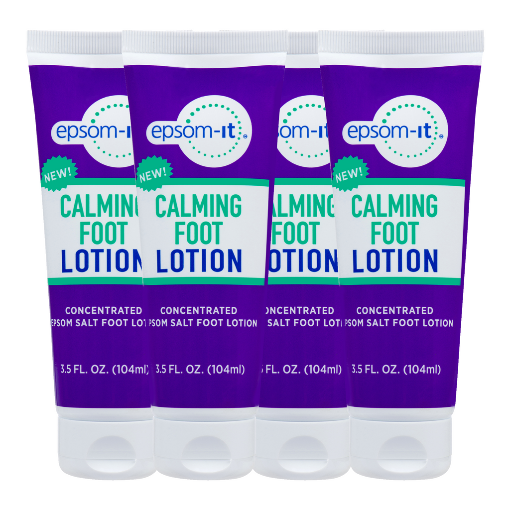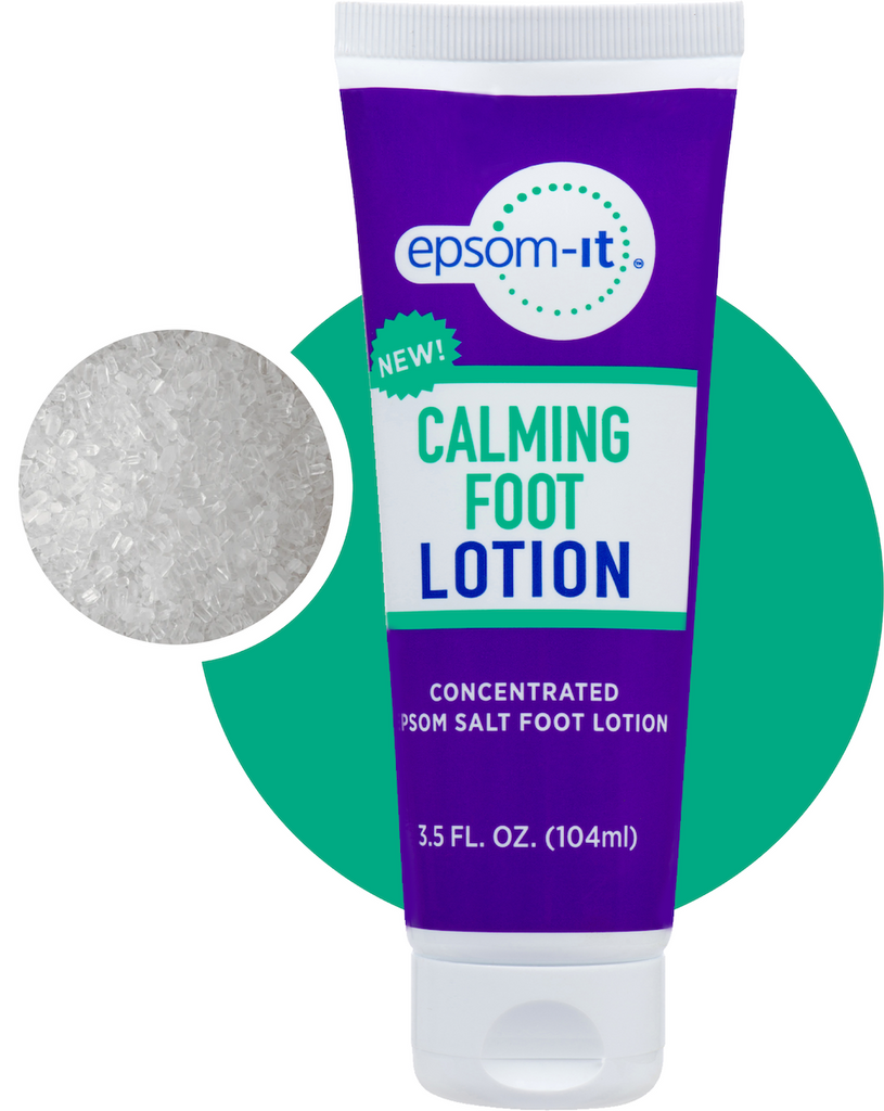 Skip the foot soak and enjoy the benefits of Epsom Salt in a foot lotion! Epsom-It Calming Foot Lotion is 30x more potent than a traditional Epsom Salt foot soak with a 20% concentration of 100% pure USP Grade Magnesium Sulfate. Fortified with natural Urea, this topical Magnesium Sulfate lotion penetrates deep below the skin offering support for tired and sore feet, ankles, leg cramps, and restless legs after a long day of standing or intense workouts. Apply as needed to support your tired, achy feet.
